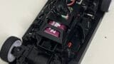 完成したスタンドにMR-04とAWDを載せてみると、タイヤが完全に浮くため、オイルダンパーやロールダンパーのメンテナンスが非常にやりやすくなりました。