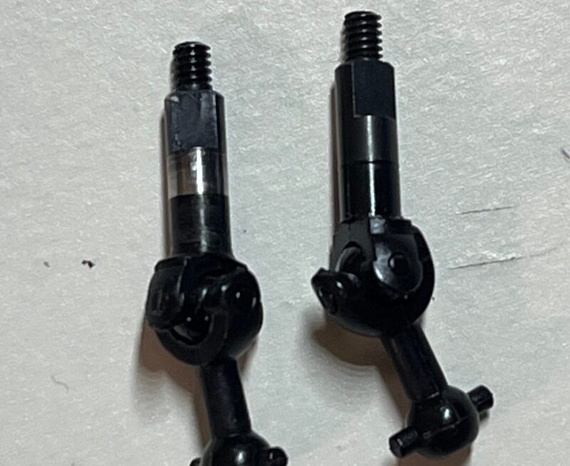 足回りを分解して確認したところ、ユニバーサルシャフト根本側のベアリングの当たりが強く、シャフトが抜けないほど固着気味になっていました。そこで、シャフト径がわずかに細くなるよう軽く加工したところ、ホイールを締め込んでも駆動が重くなる症状は解消しました。