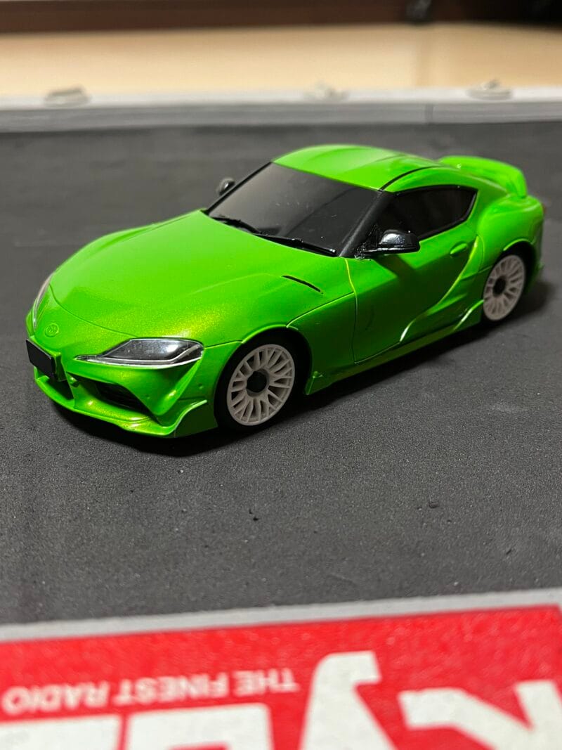 MA-030EVO2は、MR-04EVO2と共通の センサー付きブラシレスモーター を採用しており、EX-NEXTのテレメトリ機能を使って細かな設定が可能です。搭載できるボディも豊富で、走行スタイルに合わせた選択肢が広いのも魅力です。今回はGRスープラのホワイトボディを塗装し、初走行に向けて準備を進めました。