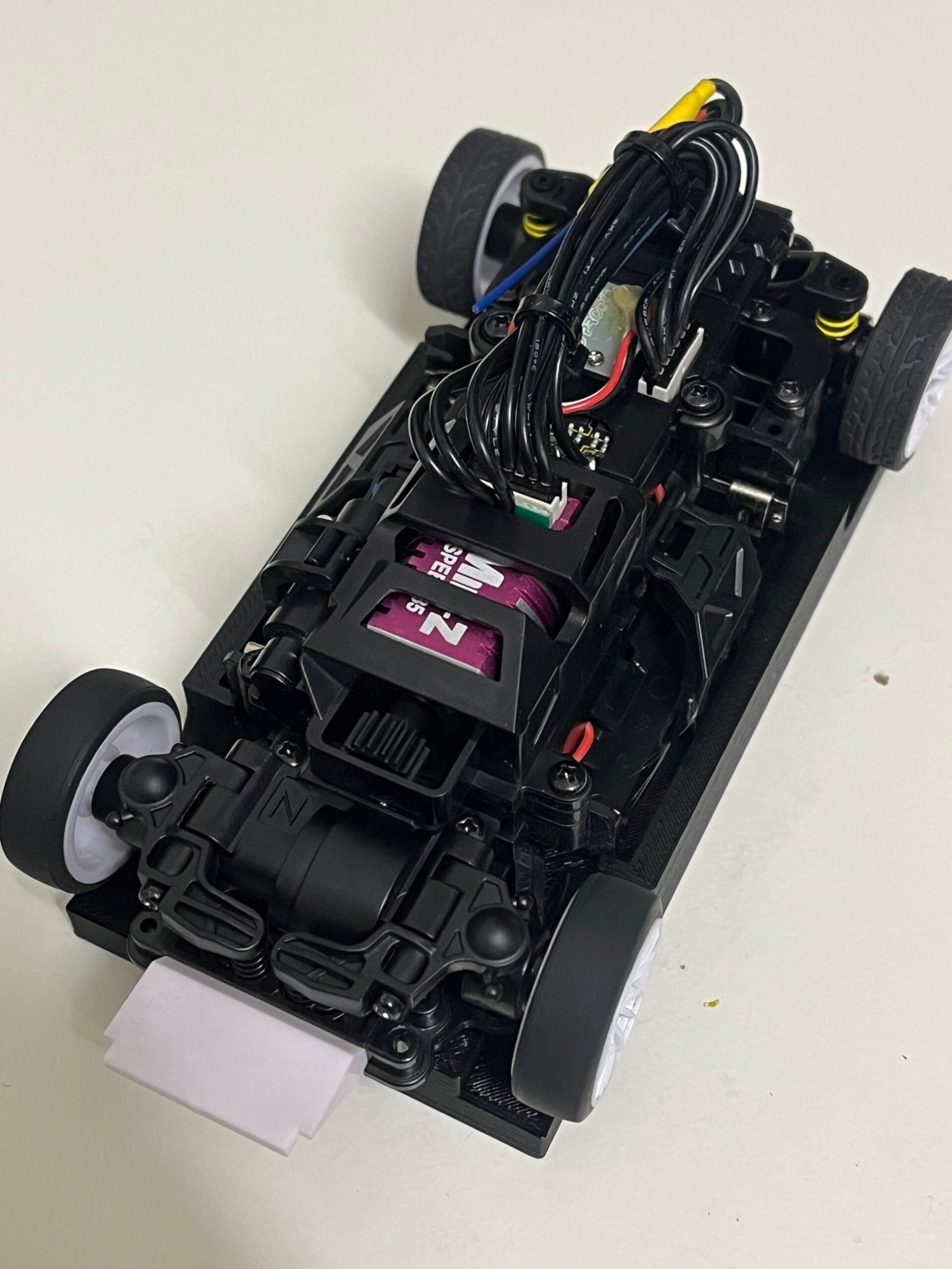MA-030EVO2は、MR-04EVO2と共通の センサー付きブラシレスモーター を採用しており、EX-NEXTのテレメトリ機能を使って細かな設定が可能です。搭載できるボディも豊富で、走行スタイルに合わせた選択肢が広いのも魅力です。今回はGRスープラのホワイトボディを塗装し、初走行に向けて準備を進めました。